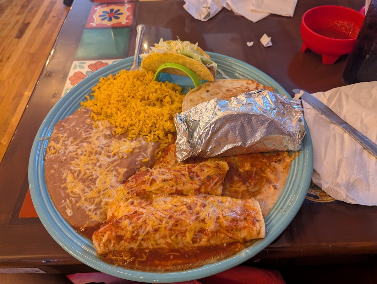 Amazing food. I had the ground beef chimichangas and they did NOT disappoint!!! Great atmosphere and friendly service in a comfortable dining room environment. Highly recommend stopping in.