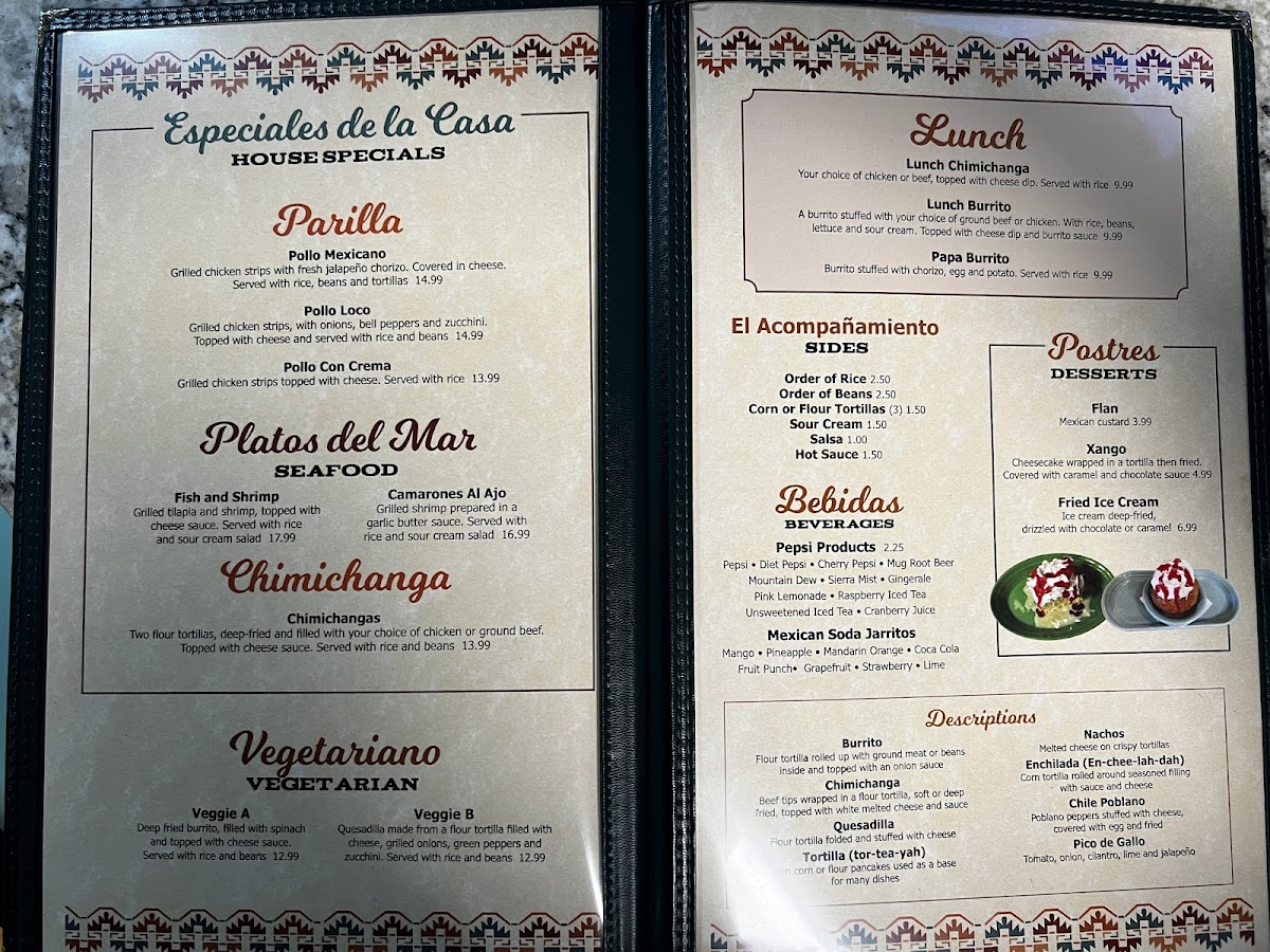 Whether you're stopping by for a casual lunch or settling in for a family dinner, you’ll find dishes that invite sharing and savoring. Favorites like chimichangas—available with beef tips or shrimp—bring a satisfying richness to the table, while lighter options such as fish tacos provide a fresh, flavorful balance. The menu also features well-loved staples like nachos, wet burritos, and taco salads that fit perfectly alongside house-made dips and sauces.